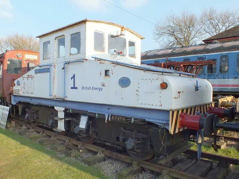 This loco started life as the fourth loco built for Kearsley Power station but after that station closed was rebuilt as a battery locomotive with the batteries fitted inside the cab and the roof mounted current collector removed. It was moved to Heysham Nuclear power station where it was used to move the wagons carrying flasks of spent fuel around the internal rail network at the power station. The loco was renumbered as Heysham No. 1 and continued in this role beyond the privatisation of the CEGB when it became the property of British Energy. The loco was replaced by a diesel locomotive at Heysham in 2009 and became the property of Electric Railway Museum in 2010 when it arrived at Baginton. The loco provides a contrast between Kearsley No.1, more or less in its original condition, and Heysham No.1 the last working standard gauge industrial electric loco in the UK.