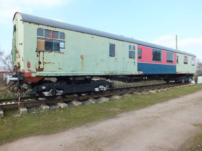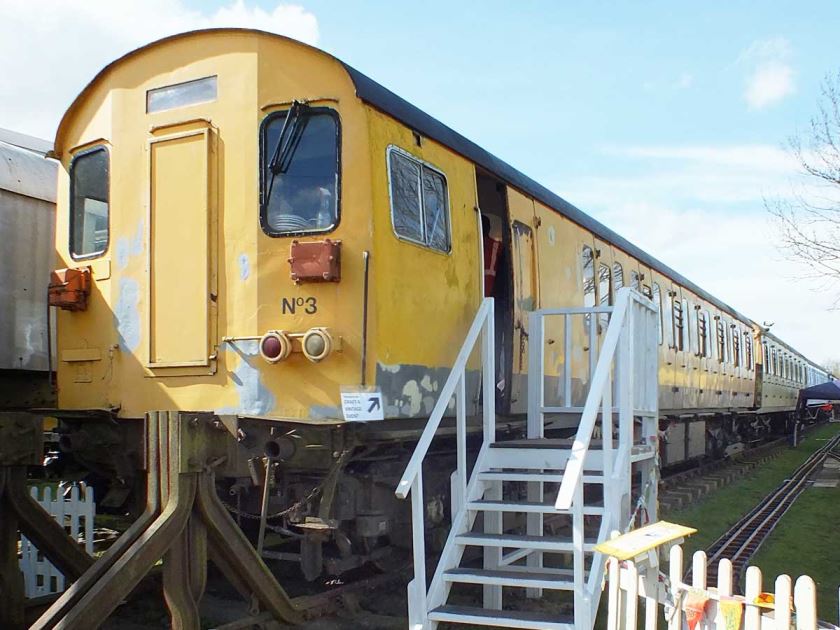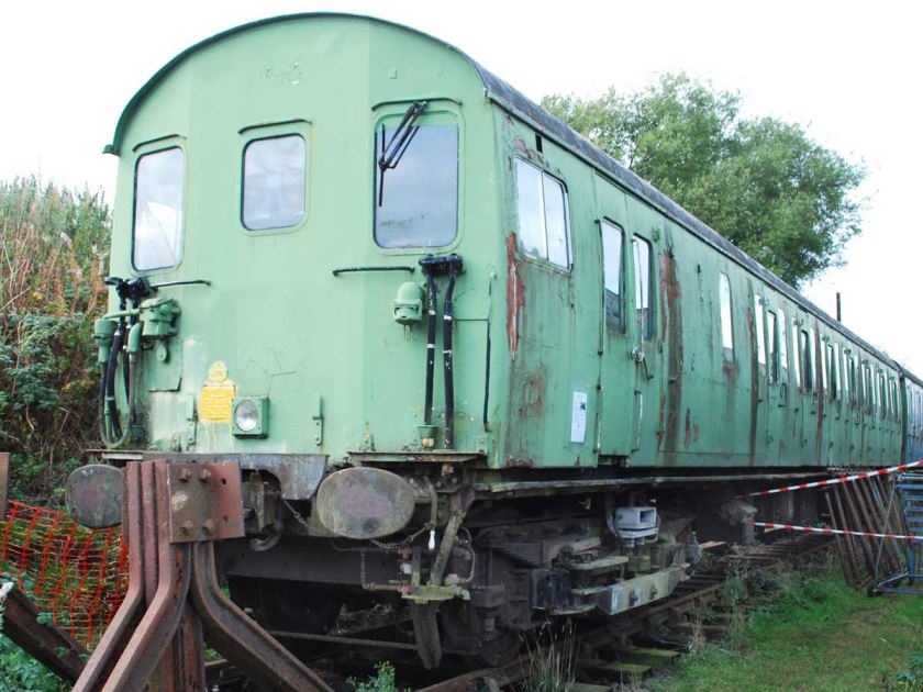 This is a four car unit and as such is the largest unit on site at Baginton. The unit was built by British Railways but to a design it inherited from the Southern Railway. The first batch of SUB units emerged in 1941 but subsequent production was delayed until the end of World War 2. They were built to carry the huge number of commuters heading to and from work in London and their homes in the suburbs of South London, Surrey, Kent and Middlesex. The design was for coaches that had the maximum number of seats per square foot and also a door to every seating bay that allowed the train to load or unload in quick time on a tight suburban schedule. Each four car unit had a driving motor coach at each end with the bogies under each cab fitted with two 250hp motors and the current collecting shoes to collect the current from the live rail to power the train. The units were marshalled into eight or ten coach using multiple sets or they could run as a single four coach unit in less busy periods. The top speed of these units was 70mph with the emphasis on acceleration to get them to keep time between the frequent station stops. This is a unique item - the last one of the 4-SUBs to survive.