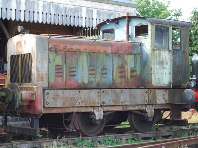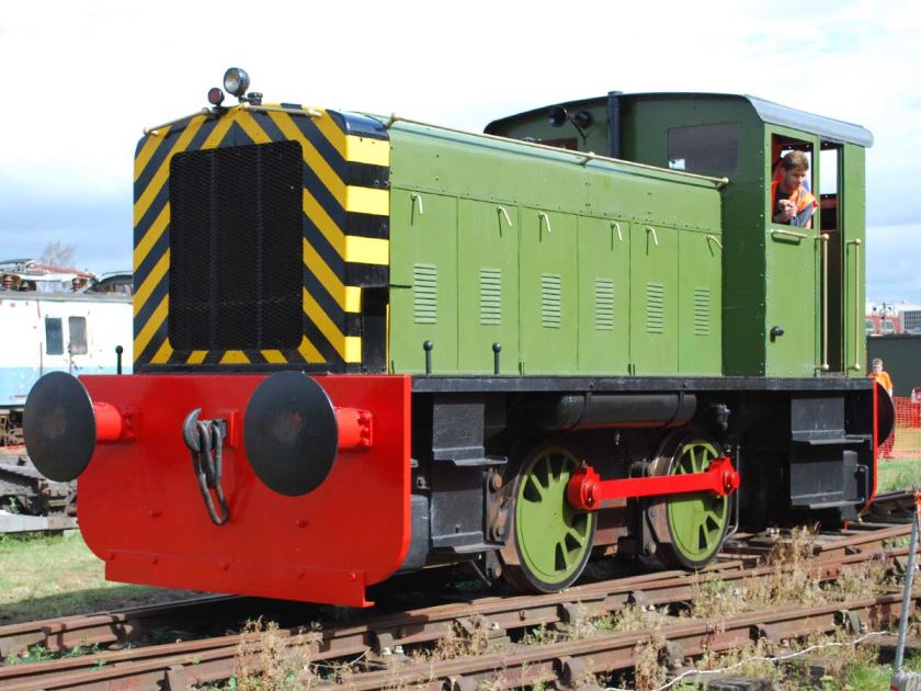 The Ruston & Hornsby Works in Boultham Street, Lincoln produced many industrial diesel shunters prior to 1950 for both the export and home markets where they displaced many an 0-4-0 saddle tank but this locomotive was produced in 1950 as the first-built example of the 165DE class and Ruston’s first ever diesel-electric and goes by the name of MAZDA. A further 163 of this class were built after MAZDA which have a six cylinder 150hp diesel engine driving a DC generator. Power produced by the generator drives a single electric motor mounted under the cab floor that turns the wheels – in effect this is an electric locomotive with an onboard power station. This form of traction became widespread in Britain after the mid 1950s. The electric equipment for the locomotive was supplied by British Thompson Houston (BTH), who had supplied electric traction components around the world for 40 years and were considered one of the world leaders in the field. BTH became the new owner of this locomotive when it was completed and was immediately dispatched to be the resident yard shunter at their Rugby Works. It was given the name MAZDA after a brand name of light bulbs for car headlamps that had been manufactured at the Rugby plant since the 1930s and were still doing good business for BTH in the 1950s. The loco remained at the works, even after BTH became part of the General Electric Company (GEC) empire, until retired in the mid 1990s. It was sold to the original owners of the site at Baginton who fully restored it while more recently, the loco was repainted in 2010 by the Electric Railway Museum to celebrate its 60th birthday and remains in regular use as the site shunting locomotive.
